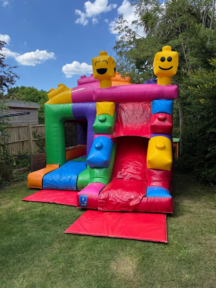 Our Lego Themed Bounce 'n' Slide Combination Castle is available for Hire in Walton on Thames and surrounding areas.