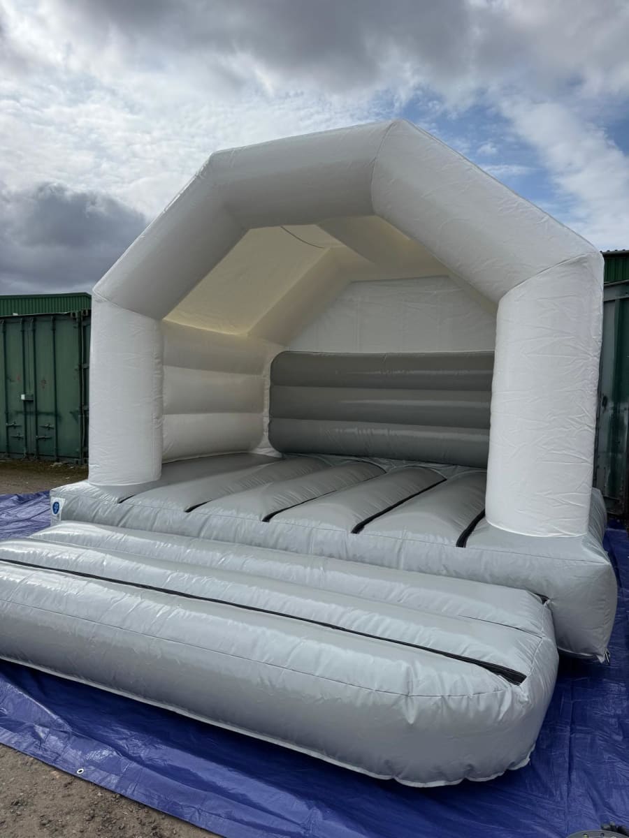Premium 12 x 12 ft Grey and White Premium Bouncy Castle, suitable for your upcoming event, great for upcoming Wedding or Christening. Available for INDOOR HiRE ONLY.
