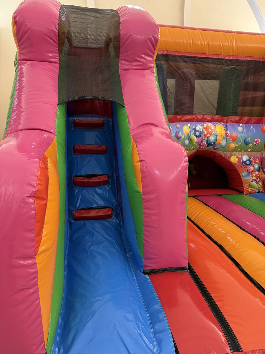 Our Rainbow Party Play Park is perfect for any celebration including tunnel ball pit and slide.