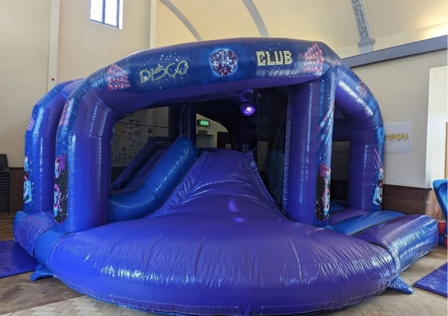 Our Disco Themed castle is perfect for any celebration for your Childs party.