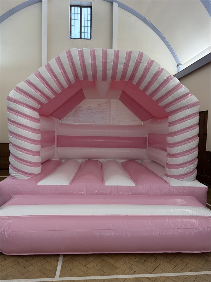 Pink Twist Themed Bouncy Castle (12ft x 12ft) is available for Hire in Walton on Thames and surrounding areas.