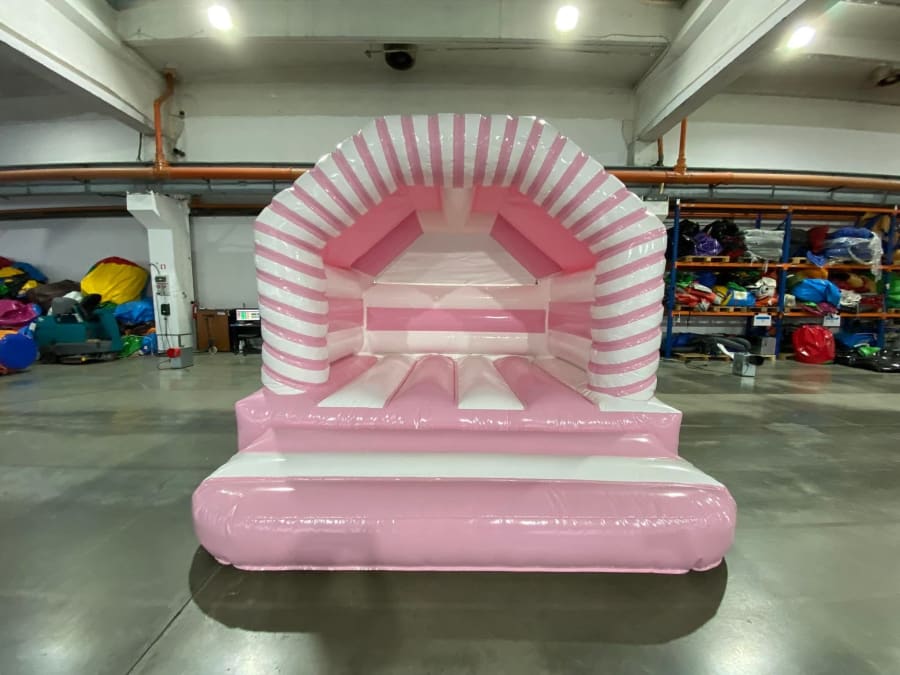 Pink & White Twist Bouncy Castle, this will bring hours of fun to any party, its a 12x12 bouncy castle and can be hired for indoors only thanks