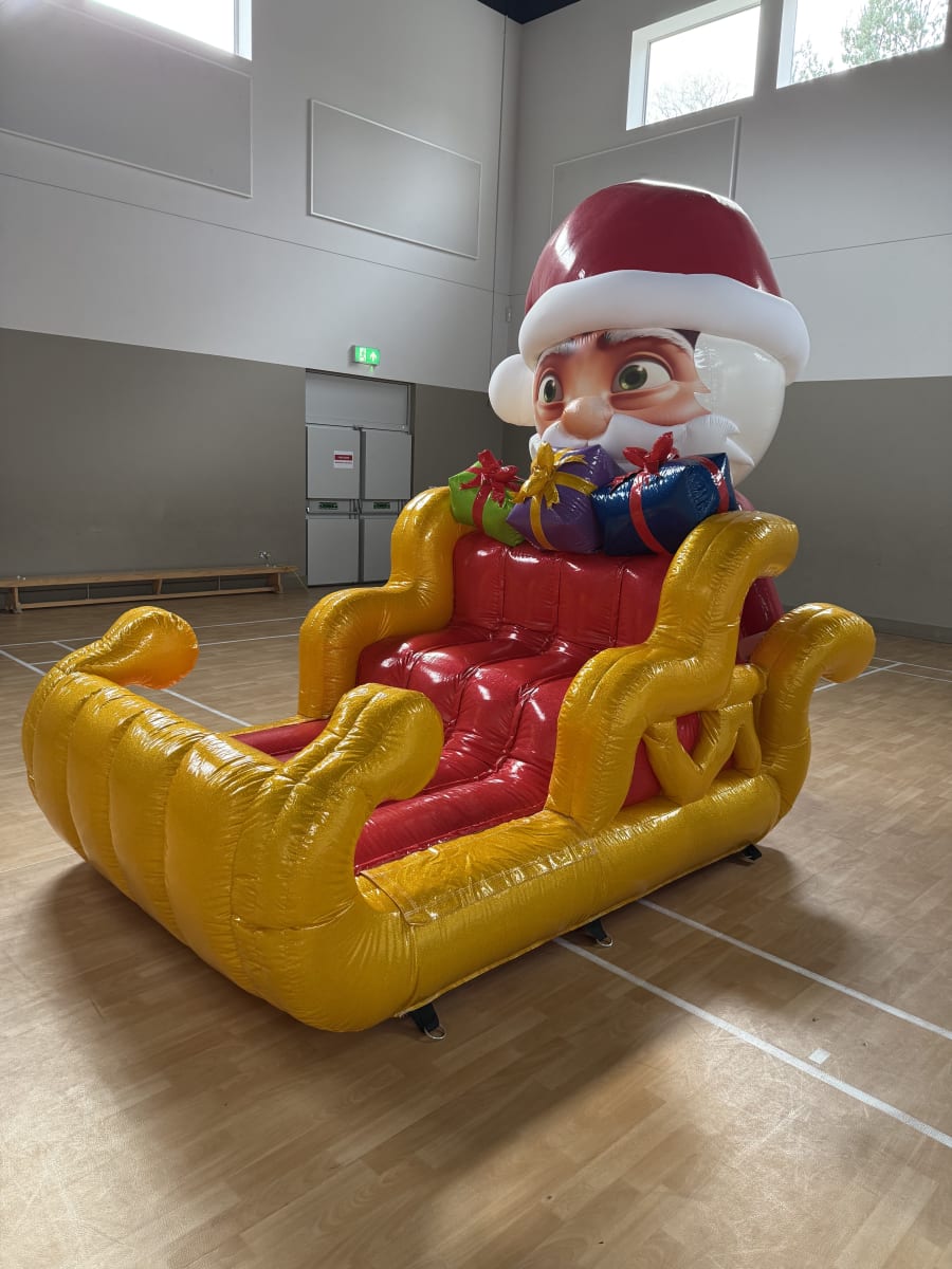 Bring the wonder of the North Pole to your event, and let children of all ages experience the joy and magic of Christmas. With its captivating design and cozy interior, this sleigh is a heartwarming addition to any holiday celebration. Create unforgettable moments with Santa Claus, gifts, and holiday cheer—all inside this charming inflatable Sleigh.