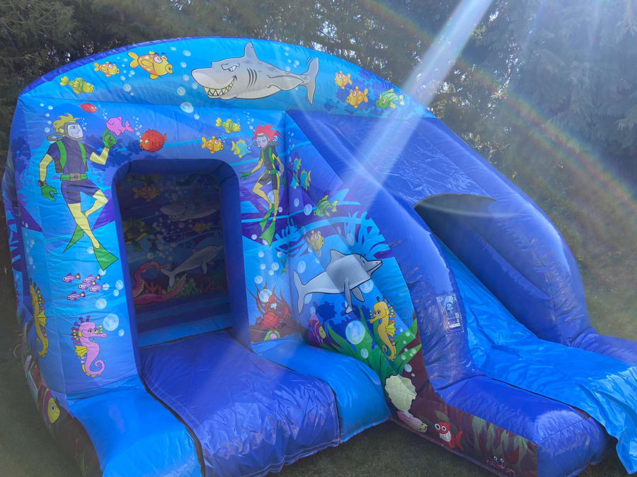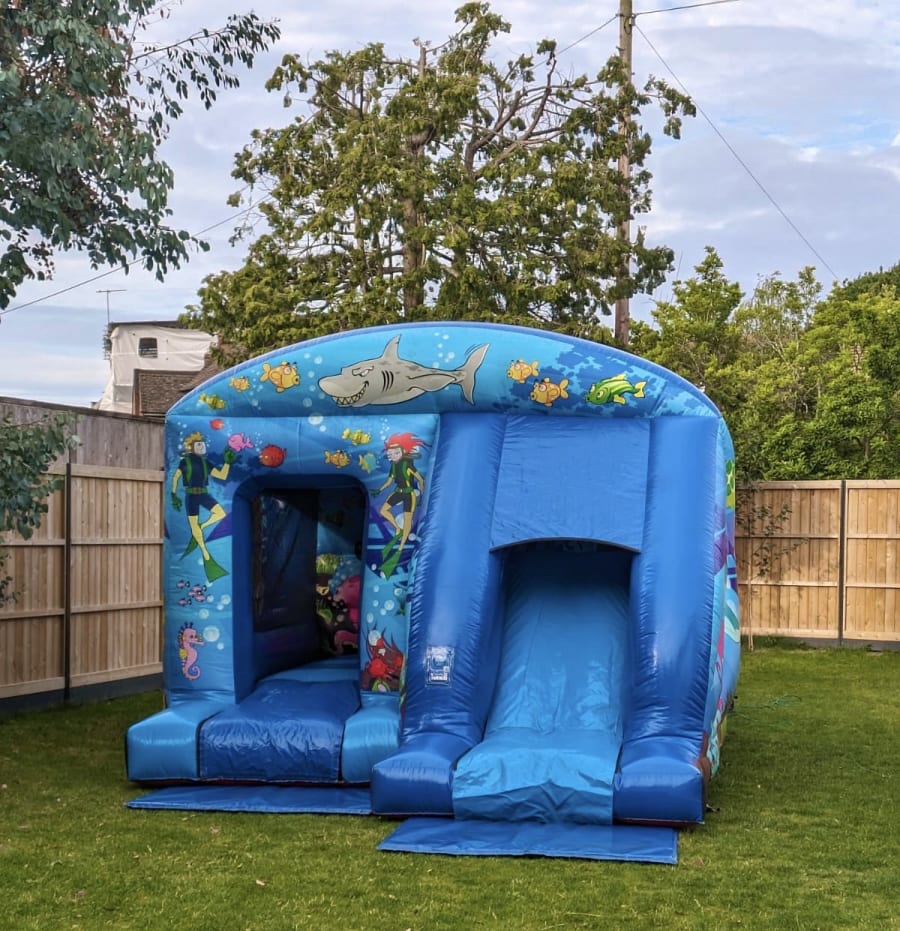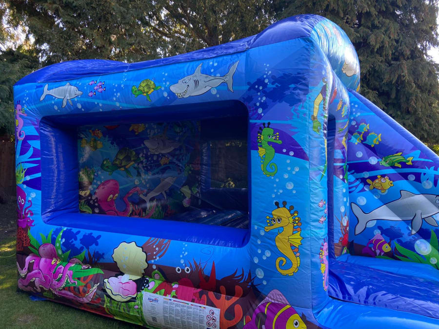 Our Ocean Themed Bounce 'n' Slide Combination Castle is available for Hire in Walton on Thames and surrounding areas.