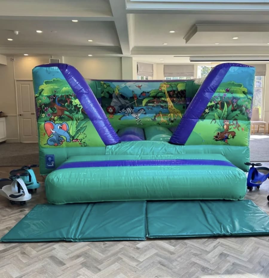 16x13 Jungle Themed Castle is available for Hire in Walton on Thames and surrounding areas, perfect for venues with low ceilings. Height of castle is 6'6" (2m).