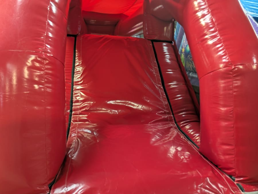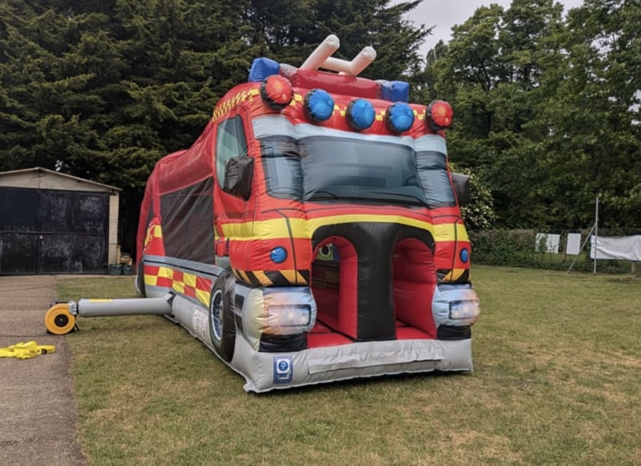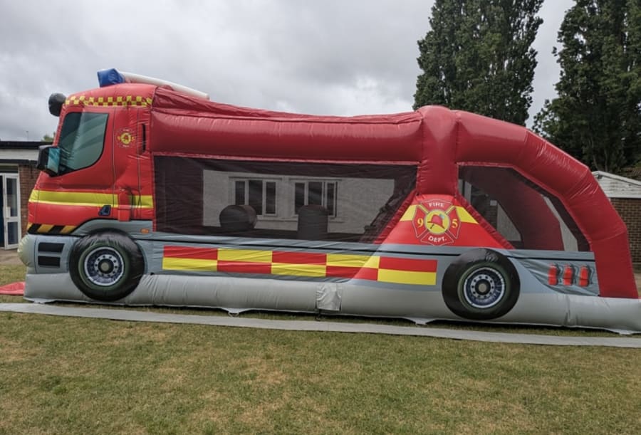 27ft 3D Fire Truck, every childs dream, climb aboard, and there is a bouncing area with bish and bash, move along, and climb the stairs, to then go down the slide, standing at almost 11ft tall this is amazing.