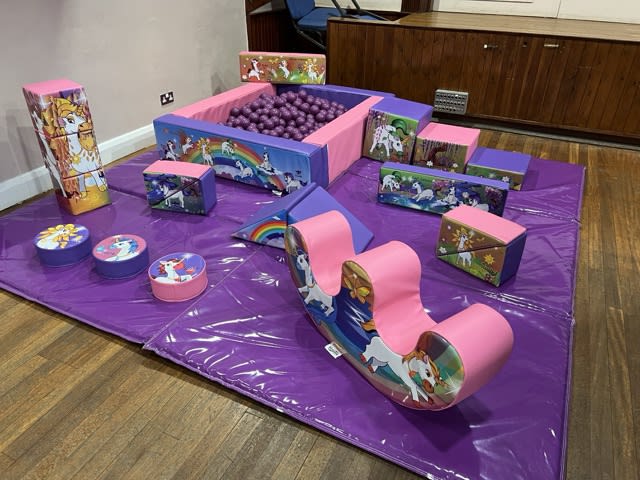 Unicorn Themed Soft Play complete with ball pit is available for Hire in Walton on Thames and surrounding areas.