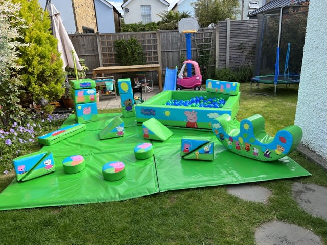 Peppa Pig Themed Soft Play complete with ball pit and Bouncy Castle is available for Hire in Walton on Thames and surrounding areas.