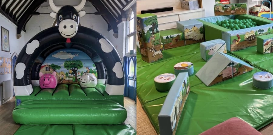 Farm Themed Soft Play complete with ball pit and Bouncy Castle is available for Hire in Walton on Thames and surrounding areas.