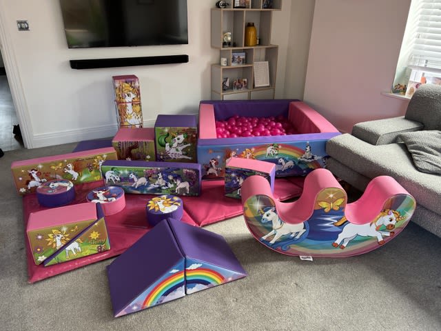 Unicorn 3D Themed Soft Play complete with ball pit and Bouncy Castle is available for Hire in Walton on Thames and surrounding areas.