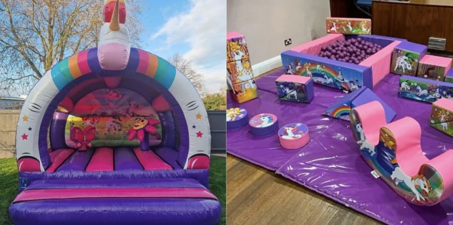 Our Unicorn Themed Soft Play and castle package is perfect for any celebration.