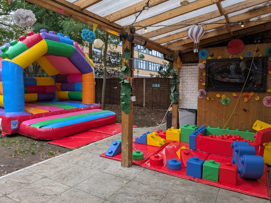 Lego Themed Bouncy Castle & Soft Play complete with ball pit is available for Hire in Walton on Thames and surrounding areas.