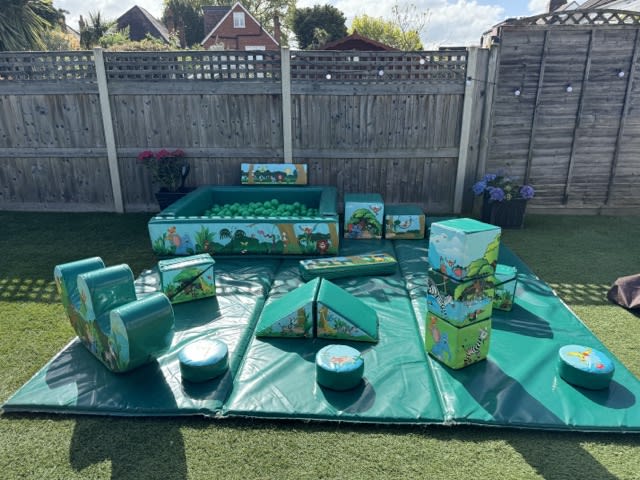 Jungle Themed Soft Play complete with ball pit and low ceiling Bouncy Castle is available for Hire in Walton on Thames and surrounding areas.