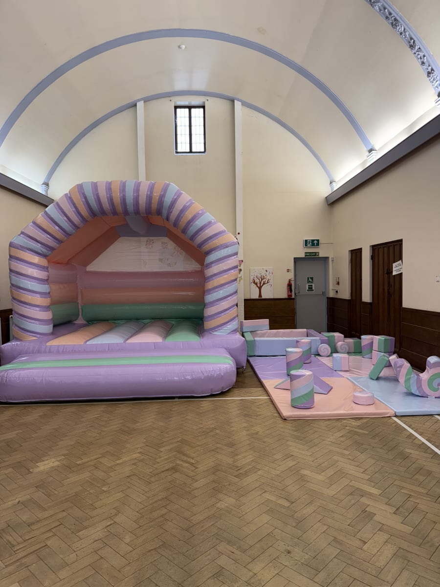 Pastel Twist Themed Castle & Soft Play complete with ball pit is available for Hire in Walton on Thames and surrounding areas.