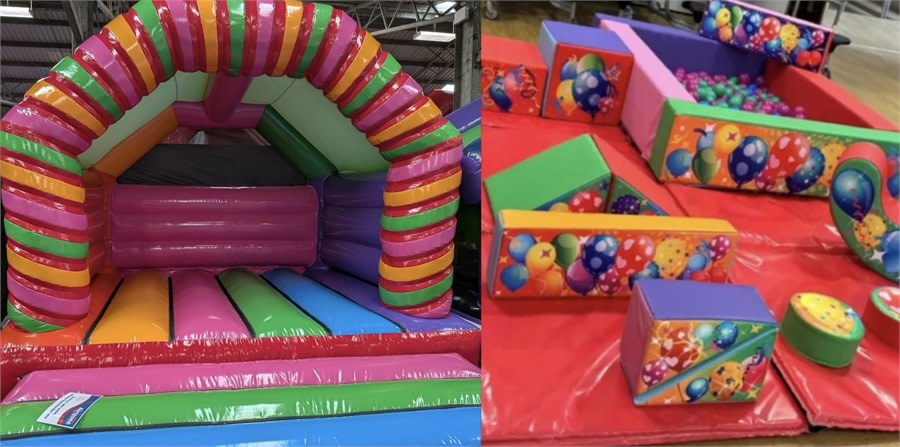 Rainbow Twist Themed Castle (12ft x 12ft) & Soft Play complete with ball pit is available for Hire in Walton on Thames and surrounding areas.